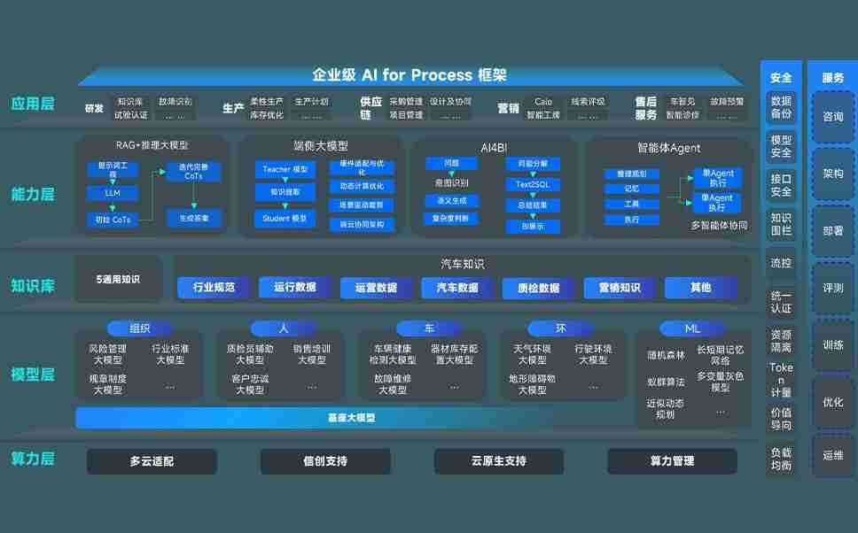 AG尊龙凯时问学智车解决方案是一套基于AI技术的汽车行业智能化系统,,,,覆盖从底层算力到顶层AI应用的全栈方案。。。方案由算力层、、、、模型层和应用层组成:算力层,,,,方案支持多种一体机配置,,,,具备云端灵活部署、、多云适配以及动态优化计算资源的能力;模型层,,,AG尊龙凯时问学平台版提供了企业级AI应用一站式构建与管理平台,,支持基于后训练强化技术的汽车企业专属模型的训练、、评测和运营;应用层,,,,AG尊龙凯时问学DeepSeek版提供包括超级员工、、、智能招采、、智能营销、、智能客服、、AI for BI等一系列解决方案,,,可助力汽车行业实现数字化转型,,,让管理更智能、、、、响应更敏捷。。。